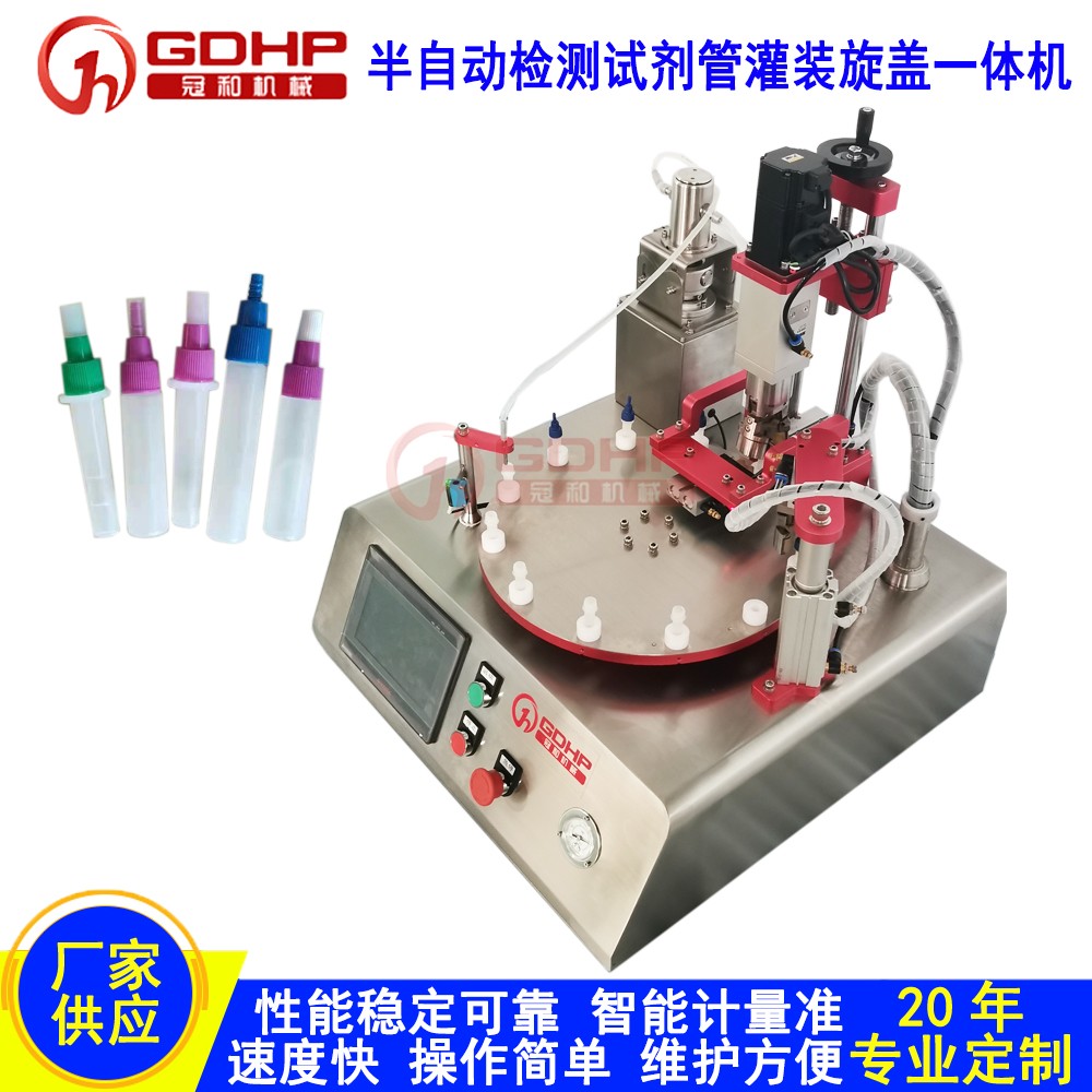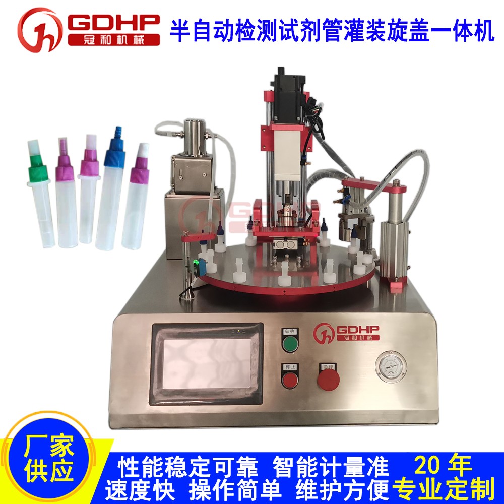 产品简介:半自动FOB抗原诊断试剂灌装机