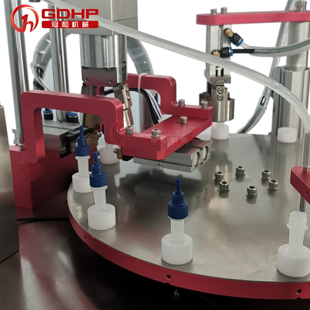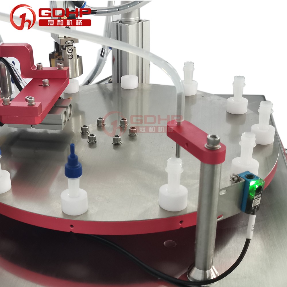 生产流程:人工放管-自动检测-自动灌装-人工放盖-自动旋盖-自动出瓶
